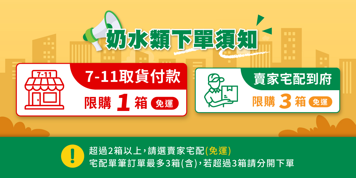 每張訂單限購3箱(含),若不符合將會通知拆單。