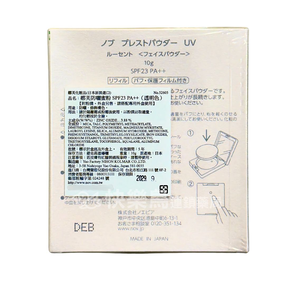 品牌:NOV 娜芙品名:防曬蜜粉種類:蜜粉適用部位:臉部用規格/容量:10g產地:請依商品包裝顯示