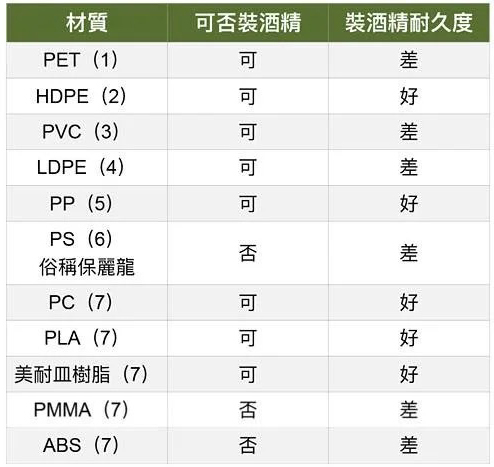 .耐酸、鹼、油性,剛性也較高,能夠阻擋水,適合承裝酒精
