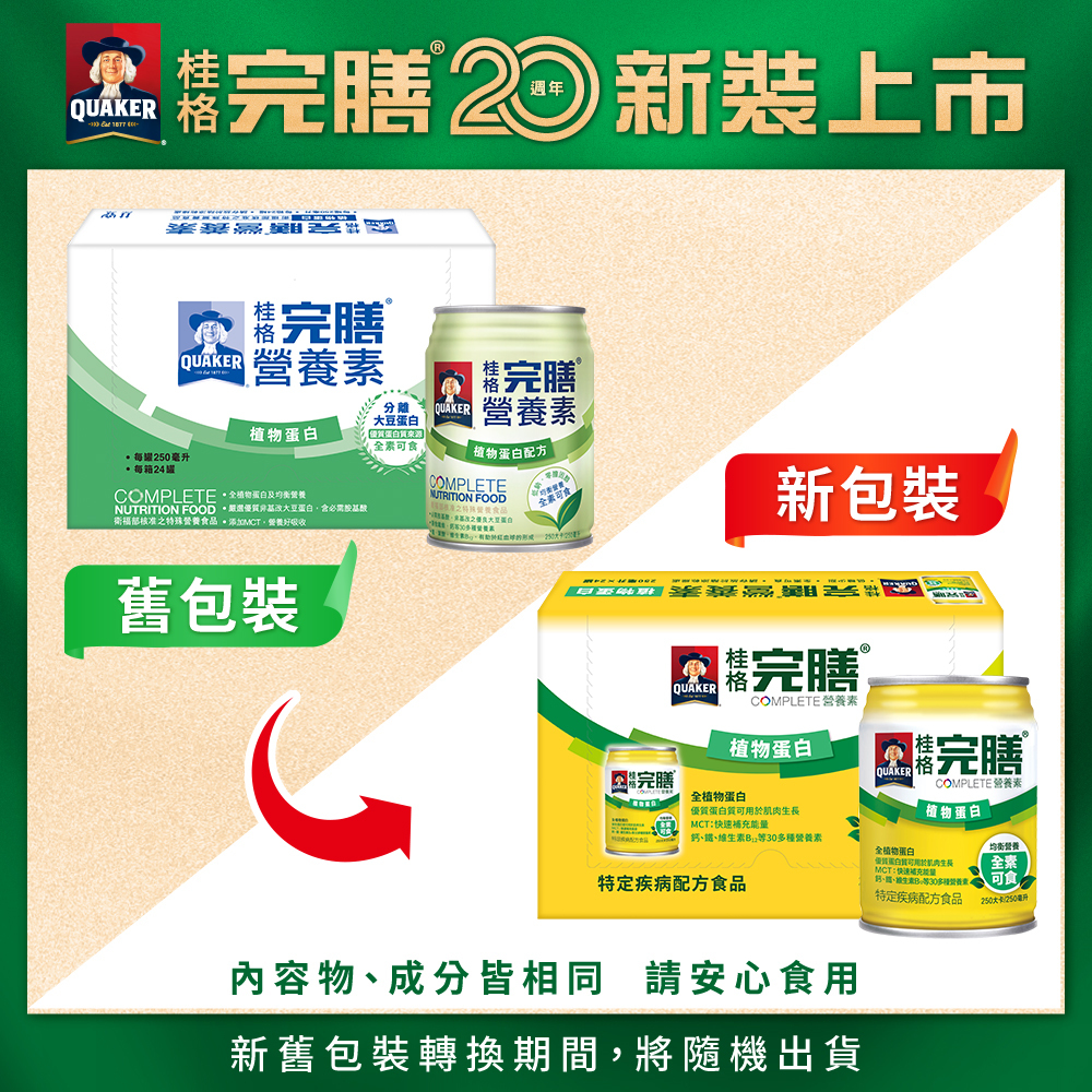 品名:桂格完膳營養素 植物蛋白配方容量:250ml x24入製造/有效日期:依商品外包裝標示為主保存期限:15個月使用說明: