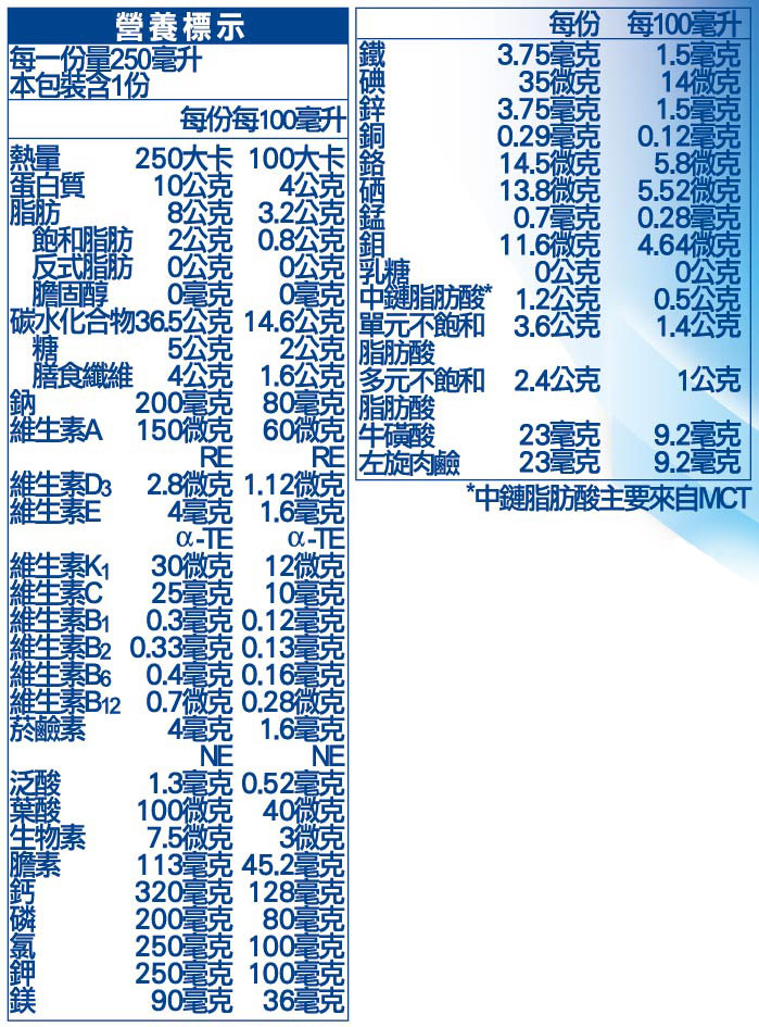 .本品添加多種營養素,部分營養素偶有沉降現象,使用前請充分搖勻後使用。