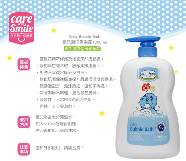 品名:貝恩歡樂洗澡組容量:泡泡浴露1000ml+洗髮精200ml注意事項: