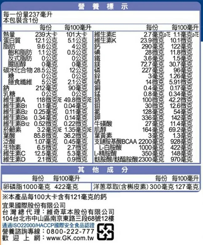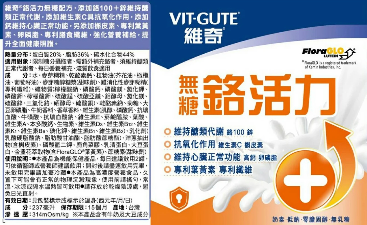 .高鈣、低鈉、零膽固醇、無乳糖